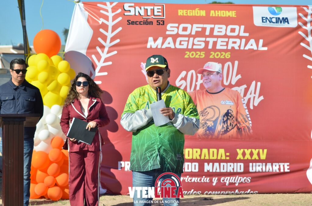 Los Mochis, Sin., 10 de enero de 2026. Con un llamado a la unidad, la convivencia y el fortalecimiento de los valores, la familia magisterial del municipio de Ahome inauguró oficialmente el XXXV Torneo de Softbol Magisterial 2025–2026 “Prof. Ricardo Madrid Uriarte”, un evento ya tradicional que reúne al gremio educativo en torno al deporte y la sana competencia.