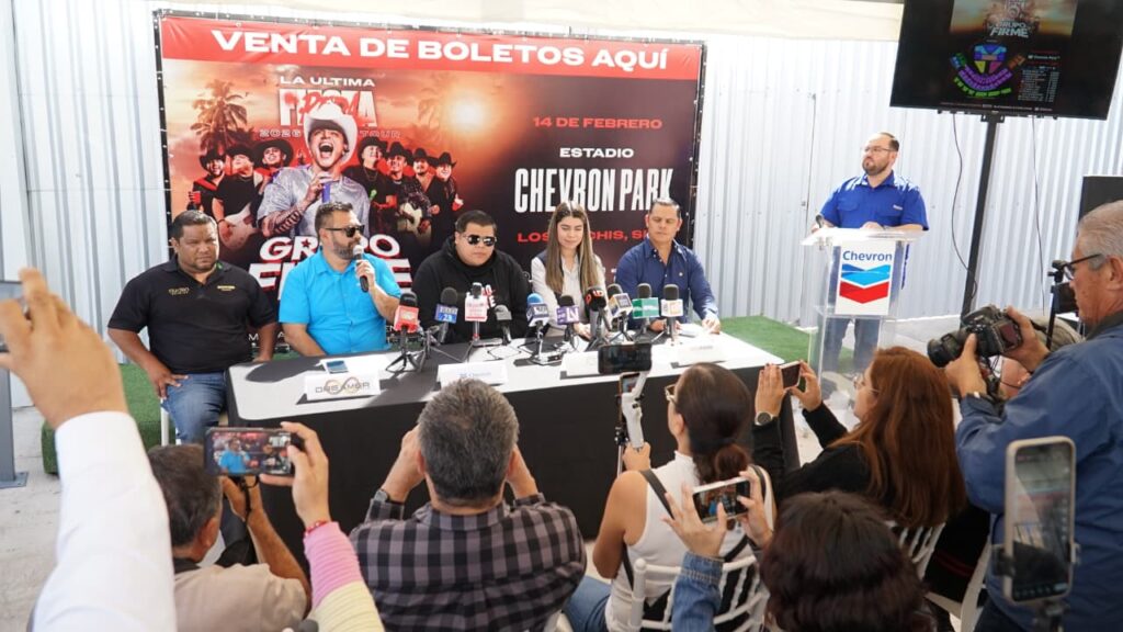 El concierto de Grupo Firme, programado para el prรณximo 14 de febrero en el Chevron Park, se encuentra prรกcticamente agotado y perfila un lleno histรณrico en Los Mochis. De acuerdo con los organizadores, alrededor de 13 mil boletos ya han sido vendidos, dejando sin disponibilidad la mayorรญa de las zonas del inmueble.